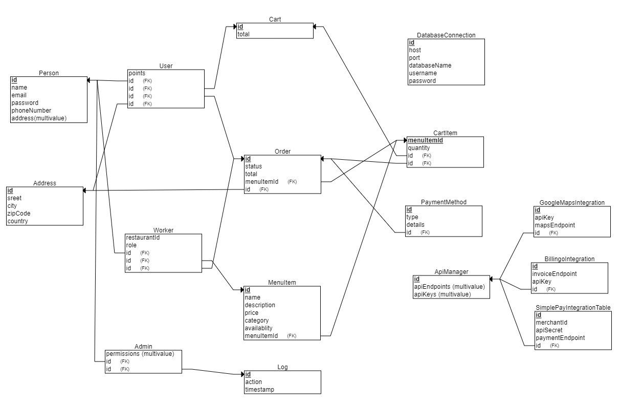 Az alkalmazásunk működéséhez szükségünk lesz egy adatbázisra és adatbázis kezelőre, hiszen sok felhasználó profilját el kell tárolnunk. A profilokhoz tartozik egy email cím, illetve egy jelszó. Egy profil eltárolja a felhasználó adatait, amit az ÁFSz szerint kezelünk majd, tehát eltároljuk a felhasználó nevét, telefonszámát, rendeléseit/ rendelés előzményeit és a fizetési preferenciáját(például elmenthetjük a bankkártyát és a következő rendeléshez nem kell újra megadnunk), illetve a felhasználóhoz tartozó jelszót és email címet. Illetve el kell tárolnunk még a kuponokat, illetve bónusz pontokat, amelyeket a rendelésekkel kapnak a felhasználók.