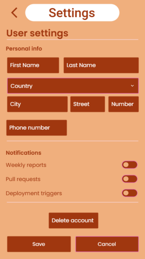 A beállítások menüben a felhasználó megtekintheti a profilját, kuponjait, illetve módosíthatja az értesítéseket. A “Profilom” alpont alatt a felhasználó megtalálja az adatait és módosíthatja őket, illetve törölheti a profilját. A “Kuponjaim” alpont megmutatja a felhasználó számára elérhető kuponok, ideértve a szezonális és szerzett kuponokat is. Ezek mellett található egy “Kedvencek” opció, ahol a felhasználó elmentett kedvenc ételeit/rendeléseit könnyebben elérheti.