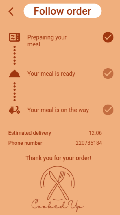 A rendelés nyomonkövetése során a felhasználó megtekintheti, hogy melyik stádiumban jár a rendelése. Például rendelés felvétele, elkészítése, csomagolása és szállítása. A térkép segítségével a felhasználó láthatja, hogy milyen messze van tőle a futár, viszont ez csak a “Futár felvette a rendelést” stádium után lesz megtekinthető a megrendelő számára.